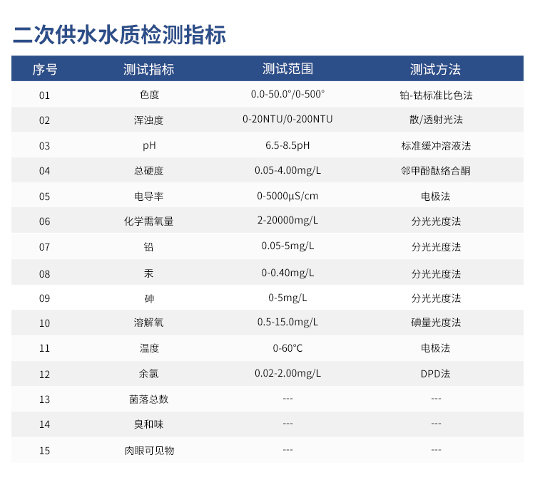 🐭分次给水探测的国家法律规定条件最主要的例如《地方给水土质条件》(CJ/T 206-2005)和《的生活喝水条件开展具体方法》(GB/T 5750.1-5750.13)。‌这部分条件适合于地方公共信息聚集式给水、建造设施设备给水和分次给水,为了保证给水土质符合标准安会特殊要求‌。