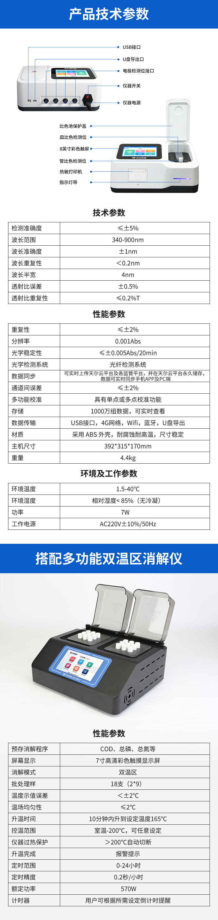 简要描述:集分光光度法与电极法于一体的实验室高精度水质测定仪,依据环境标准研发,搭载8寸高清显示屏,触控式设计,操作灵活,运用Tianer专用水质检测系统