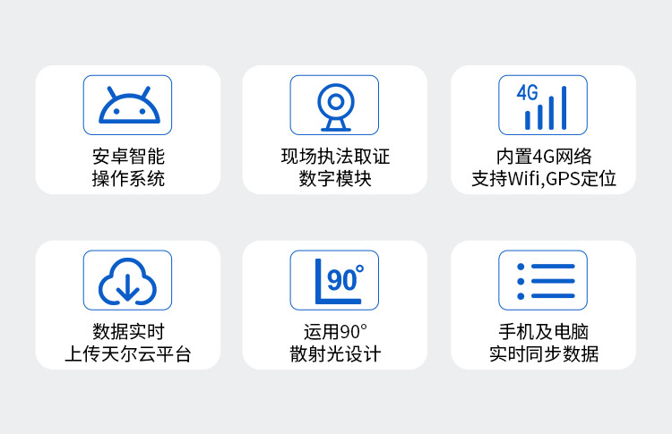 6. ⛦现厂处理:还具有现厂综合执法处理金额摸块,内装置4G无线网络,兼容GPS产品定位,Wifi,蓝牙,手机配置高清版拍照头,現場可合成拿证统计,可备案、修改操控专业人员及爬取地方等产品信息