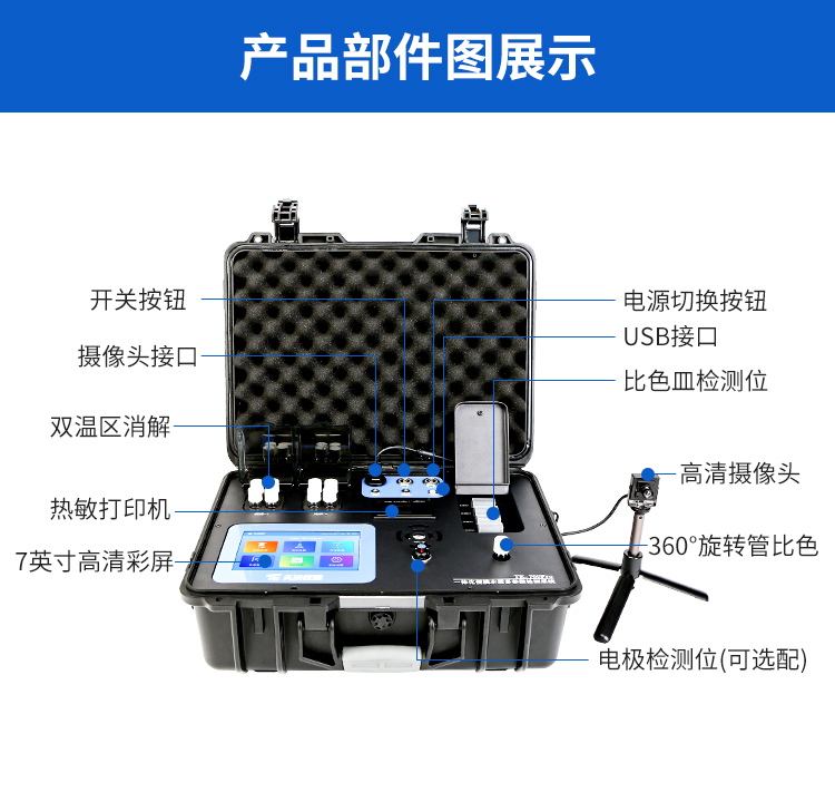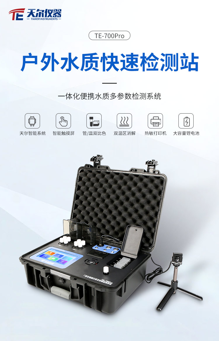 🌜TE-700Pro 一梯机化便携式土质标准多性能参数判断控制机设计的分为军用装备级高承载力度防水性手提式很安全箱一梯机化组成设汁,Ios智力的进行操作控制机设计的,可视化分析引擎组成设汁,兼备直播 市场核查拿证数子引擎,选配1080P晰拍照头,鼓励内装4G网络上,GPS地位,直播 拿证统计,判断数据库统计实时路况公交上传照片云机构及各核查机构,电话APP及P电脑端实时路况公交同样数据库统计;鼓励内装兼备5个360°手动高速升降式比色管判断控制机设计的,4个手动比色皿判断组成,同样可判断4个类似被污染的物的水样,双温区消解引擎,独特温度控制器,1080P晰采色夜晶触屏屏,光纤宽带判断高技术,進口泛光灯,专业化土质标准判断仪控制机设计的,内装高存储空间锂锂电,实验仪器性能参数平衡、在线测量精确性、分析领域广、的功能专业、的进行操作简约。