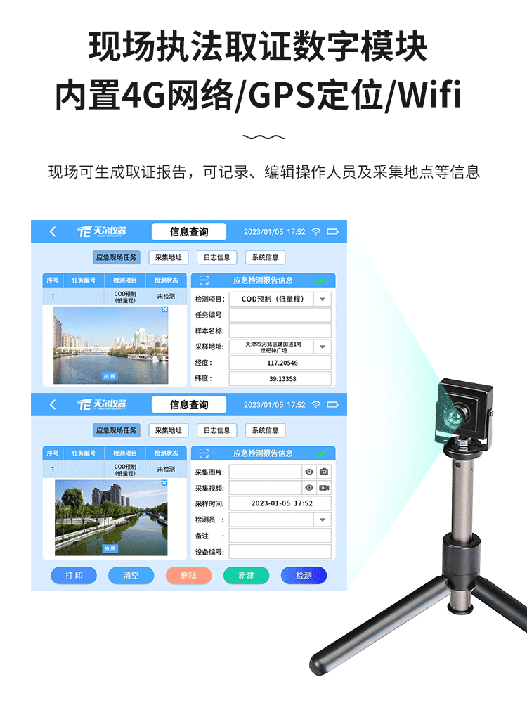 简要描述:采用军用级高强度防水手提安全箱一体化设计,安卓智能操作系统,可视化模块设计,具有现场执法取证数字模块,配置高清摄像头,支持内置4G网络,GPS定位,现场取证报告,检测数据实时上传云平台及各监管平台,手机APP及PC端实时同步数据;支持内置具有1个360°自动旋转式比色管检测系统,4个自动比色皿检测结构,同时可检测4个相同污染物的水样,双温区消解模块,独立温控,高清彩色液晶触摸屏,光纤检测技术,进口光源,专业水质检测仪系统