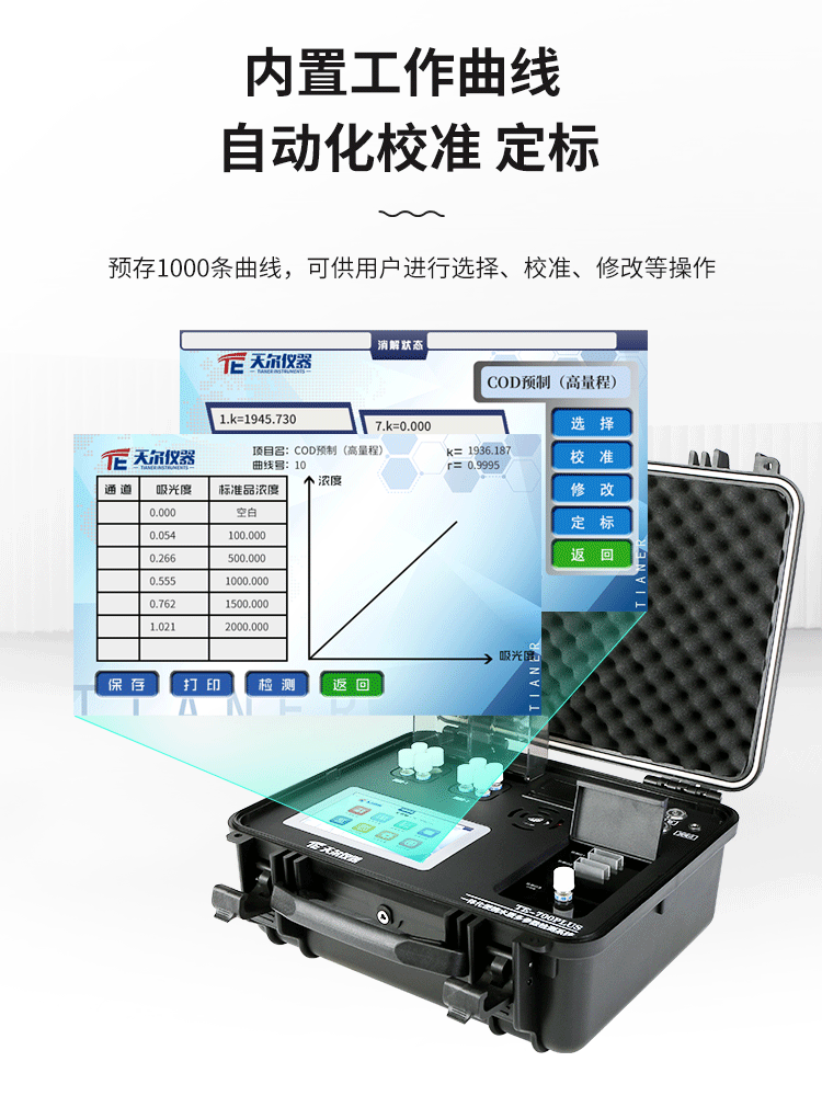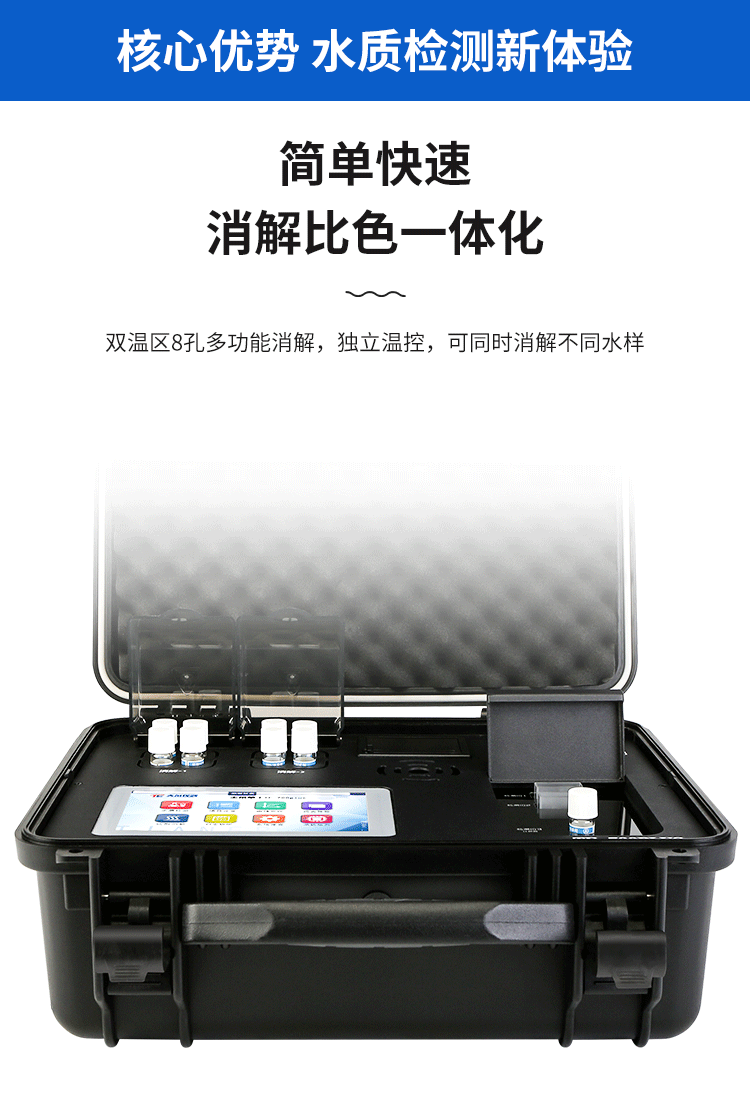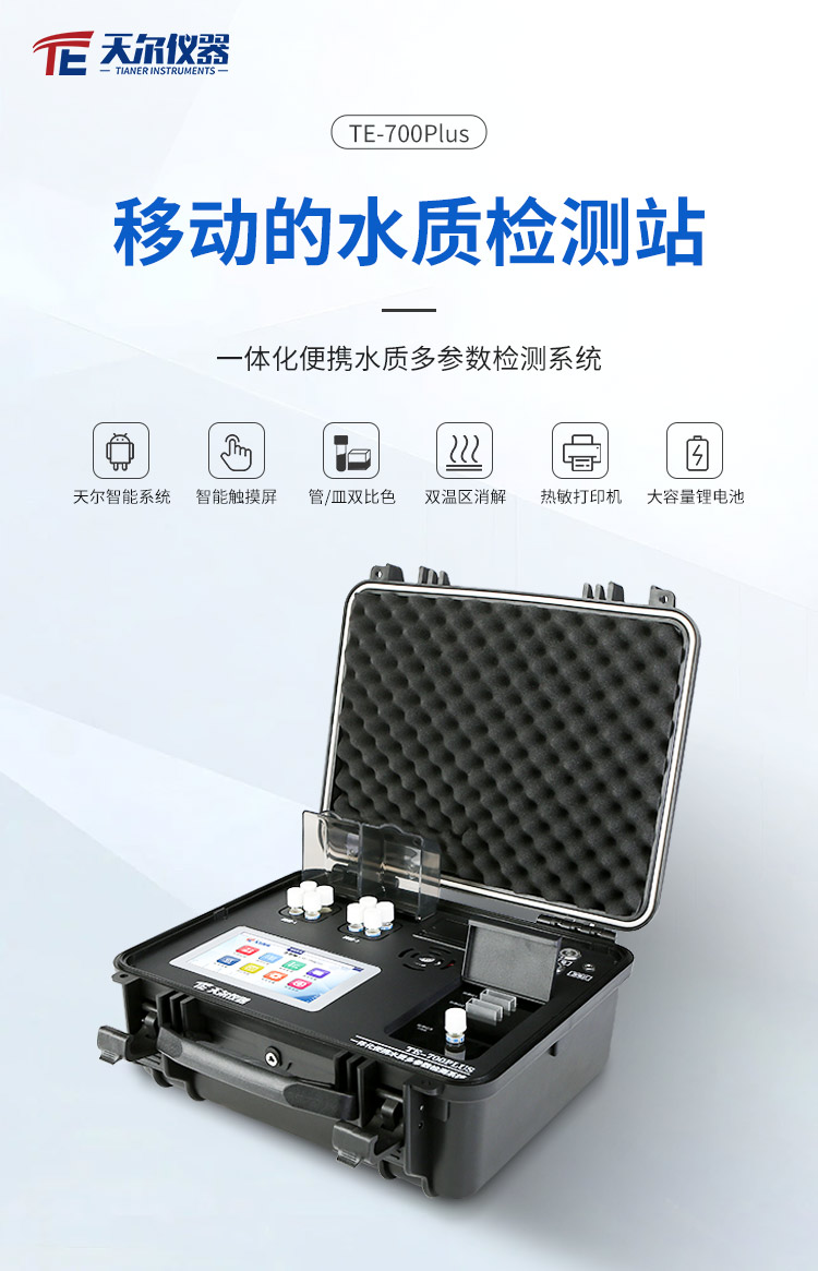 TE-700Plus 合二为一化轻便式地表水多工艺参数判断装置主要包括军用装备级高防度防水涂料手提箱很安全箱合二为一化设计方案,4个360°自然平移式比色管判断装置,2自然比色皿判断结构的,而且可判断一个是一样的废弃物物的水样,双温区消解模快,自立控温,小数化ibms装置,颜色液晶显示器触屏屏,光纤传输判断工艺,原产led灯光,专业化地表水判断仪装置,原机高容积锂电板,TE-💛700Plus 一体化平台化携便式水质监测多规格检侧操作使用系统性动态平衡、在测量准确的、分析区域广、职能巨大、操作使用简略,🍬满足需要 《HJT399—2007水环境监测生物需氧量的判断最快消解分光光度法》《HJ535-2009水环境监测氧化还原电位的判断纳氏免疫试剂分光光度法》《GB11893-89水环境监测总磷的判断钼酸铵分光光度法》论文检测规定要求.