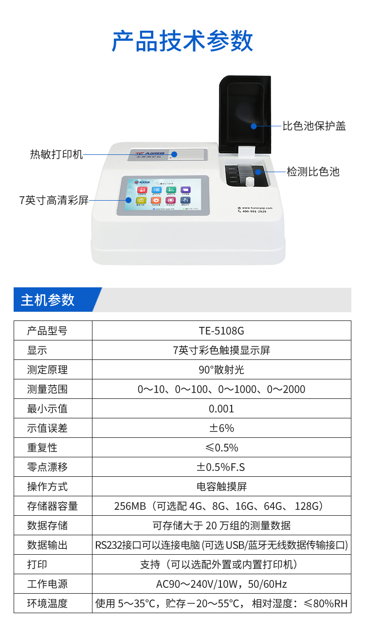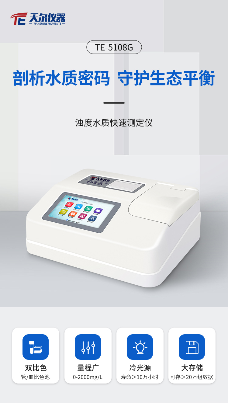 TE-5108G台式电脑电导率检测仪𒐪进行金属的检测技木,7厘米颜色液晶板接触屏、6个接触论文检测功用摸块、本性化实施细则制定,操控便捷性,用進口医疗用具LED光源,职业 水体论文分析仪控制系统,🍨TE-5107G总氮飞速测定法仪耐磨性稳定可靠、检测的合理、旋光度的测定的范围广、用途庞大、基本操作简洁。