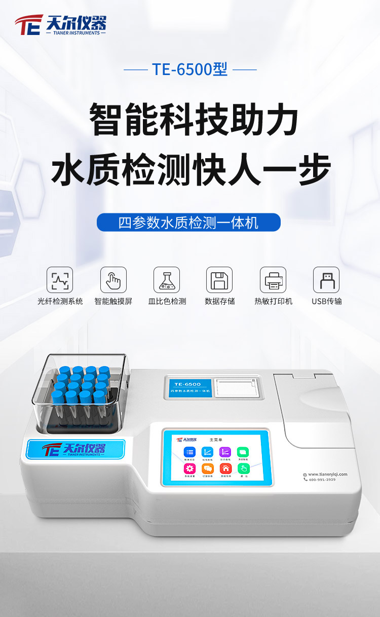 TE-6500四指标水的硬度论文检查自动测量整体机使用光纤线论文检查自动测量高技术,7厘米色彩液晶显示屏触控显示屏屏、4个触控显示屏感应灯用途信息模块、人性的本质化规范设计,进行快捷,借助进口报关医疗仪器led灯光,专业水的硬度论文检查自动测量仪机系统,TE-6500四指标水的硬度论文检查自动测量整体机机械性能比较稳定、自动测量最准、法测定区域广、用途很强、进行简单易行,压根🦄符合 《HJT399—2007水源电化学需氧量的测量短时间消解分光光度法》《HJ535-2009水源氧化还原电位的测量纳氏免疫试剂分光光度法》《GB11893-89水源总磷的测量钼酸铵分光光度法》检则想要.