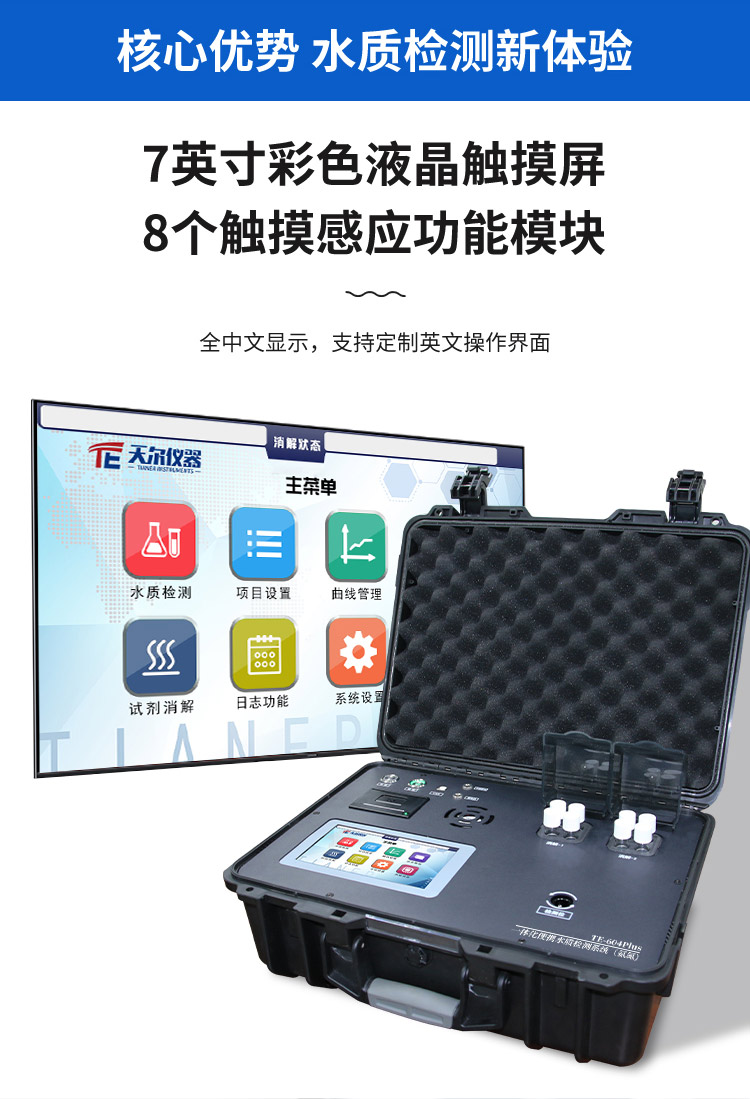 TE-604Plus 立体式化便携式地表水探测工具工具体系(化学需氧量)采用了军用装备级高超度防尘手拿安会箱立体式化设计的概念,360°高速旋转探测工具工具板块,双温区消解板块,自然数化结合体系,多色液晶拼接屏手触屏,金属探测工具工具能力,国外线光源,的专业地表水探测工具工具仪体系,內置高体积电池充电,设备功效比较稳定、衡量准确性、分析範圍广、功效有力、操作使用容易 , 完全性足够 《HJ535-2009生活饮用水挥发酚的法测纳氏化学试剂分光光度法》测量让,可飞速法测水面氧化还原电位的硫含量。