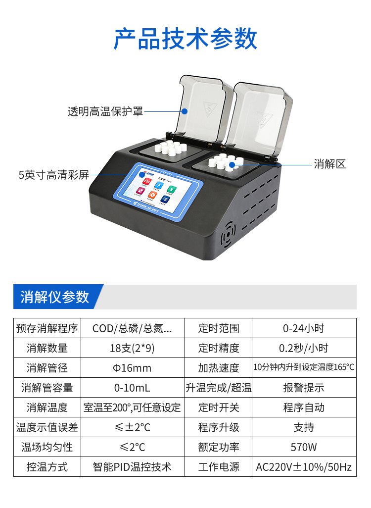 简要描述:双温区多功能消解仪满足国标对COD、总磷、总氮等检测要求.配备7寸彩色触摸屏,操作简单,智能安全,升温速度快,温度均匀稳定