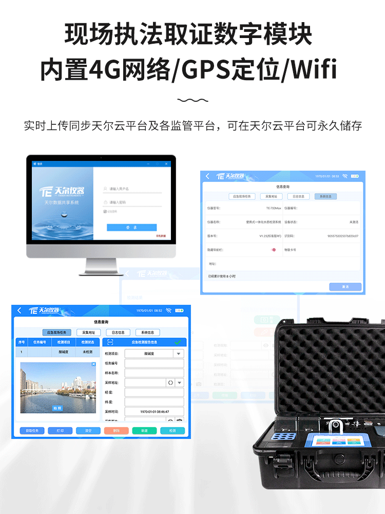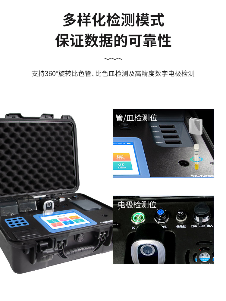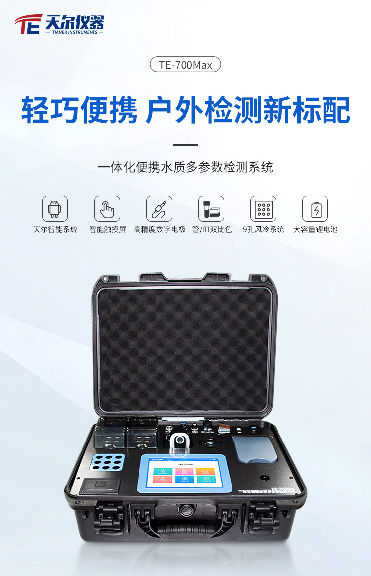 TE-700Max💎 协同一体式水质标准多基本参数检侧装置应用军用装备级堆物攻度防渗水手拿的安全箱协同一体化规划,内部设置有高电容量锂電池,可改变在户外流通性数学作业;🐼安卓版智力工作系统软件,可视化分析模快设计,含有现场视频城管执法调查取证号码模快,预置4G在线,大力支持GPS定位手机,Wifi,蓝牙,配备高清晰度拍摄头,直播 可绘制注册情况汇报,并可统计、复制粘贴实际操作人工及收采地址等信心;🌞检则动态数据分析可实时的公交上传视频天尔云的系统及各监管机构的系统,并在天尔云的系统可长期性店铺,动态数据分析也可实时的公交同步软件苹果手机APP及PC互联网;研制高清图片五颜六色液晶拼接屏摸屏,原装进口的光源ꦇ适配管比色和皿比色两类比色方式及参比电极法检查,兼备360°扭动比色管检侧性能,还有效处理比色管管差因起的读数粗差,4个比色皿在线检测设计,可同时查重4个是一样的生态破坏物的水样,检测如何快速准确度,双温区消解版块,自立恒温,内设9孔风冷设计,可1制冷,降低了运作停留时间段,职业水质标准查测操作系统,保证企业准则科研,可短时间分析水源中COD、化学需氧量、总磷、总氮、pH、融化氧、电阻率等种水里面影响物。
