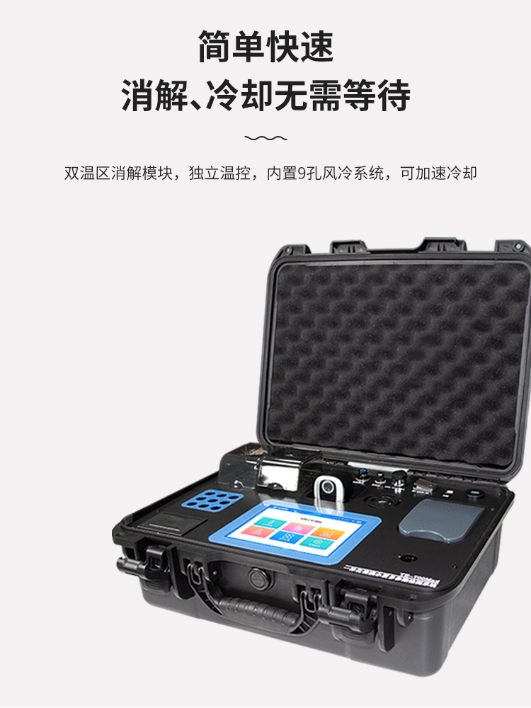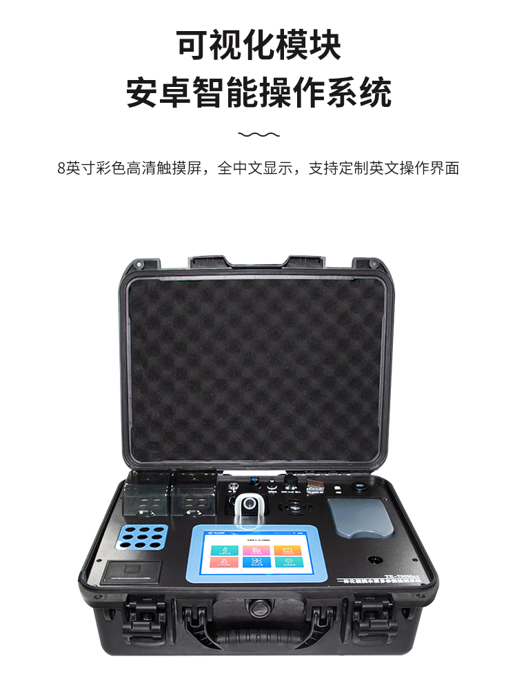 简要描述:采用军用级高强度防水手提安全箱一体化设计,内置高容量锂电池;安卓智能操作系统,可视化模块设计,具有现场执法取证数字模块,内置4G网络,支持GPS定位,Wifi,蓝牙,配置高清摄像头,现场可生成取证报告,可记录、编辑操作人员及采集地点等信息;可实时上传天尔云平台及各监管平台,并在天尔云平台可永久储存,可实时同步手机APP及PC端;搭载高清彩色液晶触摸屏,进口光源;360°旋转比色管检测功能,4个比色皿检测结构,可同时检测4个相同污染物的水样,双温区消解模块,独立温控,内置9孔风冷系统,加速冷却,专业水质检测系统