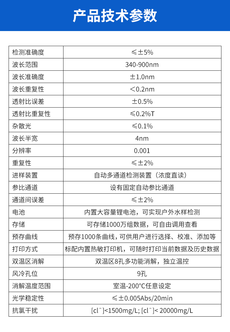 🦋8. 测试比率:COD(2-20000mg/L)、挥发酚(0-150mg/L)、总磷(0-100mg/L)、总氮(0-100mg/L)、溶解性总固体(0-2500NTU)、飘浮物(0-1500mg/L)、pH(0-14pH)...