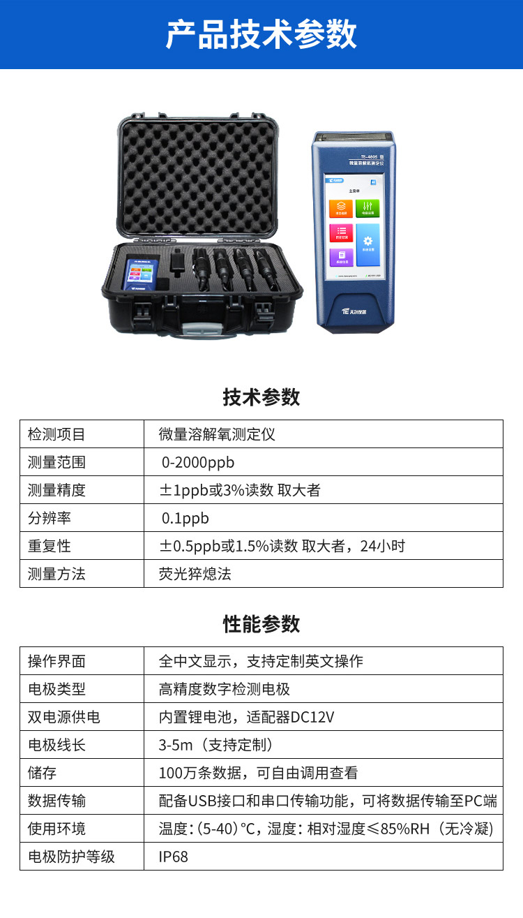 简要描述:运用PPB级光学溶解氧传感器,确保了在(超)低浓度的稳定性和准确性,无需预热,响应速度快,内置高容量锂电池,自带高强度防水耐酸碱便携箱