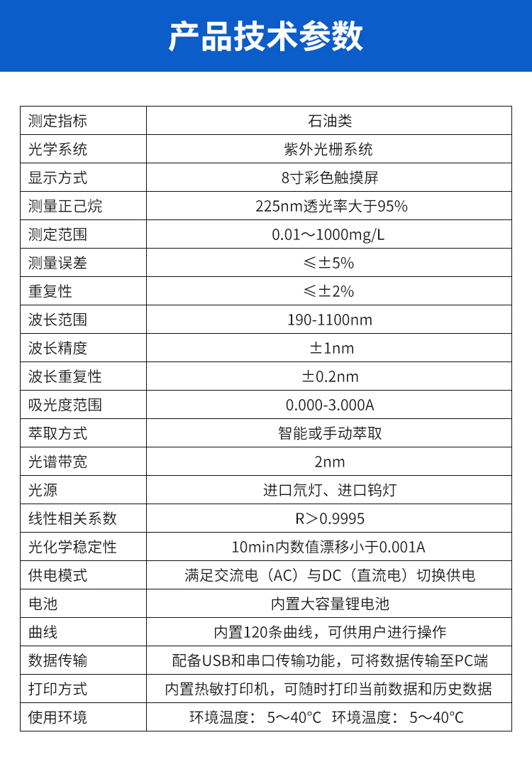 4.主要包括UV紫外线光栅体统,可见光波长225nm,采用测油分折复印,计算精程度高,相同性好