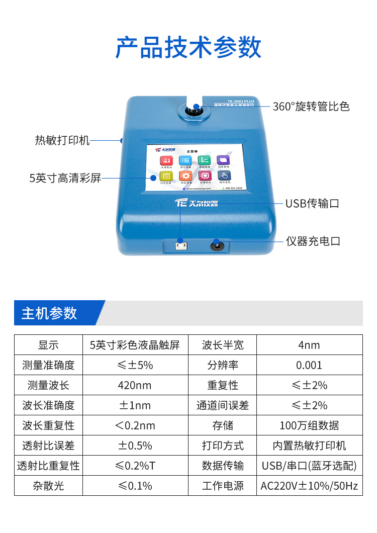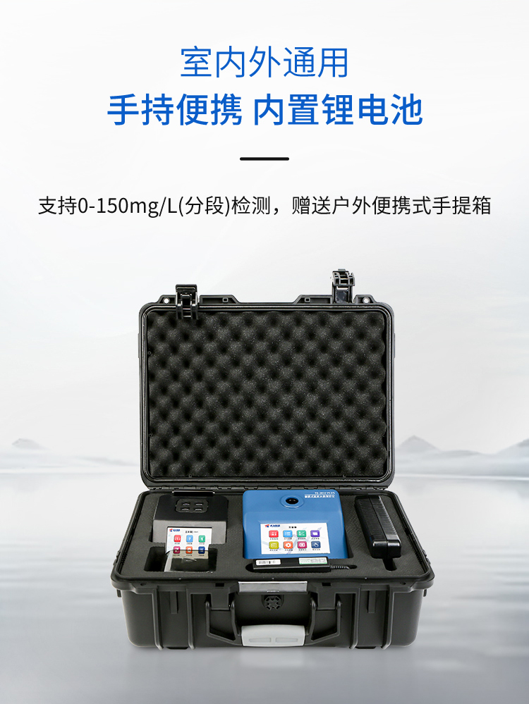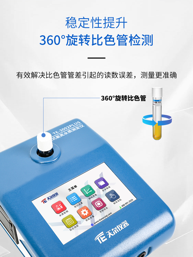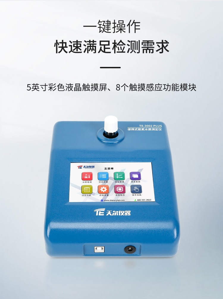 TE-3002Plus 手持式氨氮测定仪使用光钎在线检测科技,360°拖动检则,54英寸彩虹色液晶显示屏触屏屏、进口报关照明,内装使用水体检测工具设计,能安全稳定、衡量较准、判断范围内广、功能模块有力、运行简略,盐浓度直读,全具备《HJ535-2009水质量高锰酸盐指数的测定法纳氏化学药品分光光度法》检侧规定,可迅速的检测河中氯离子含碳量。