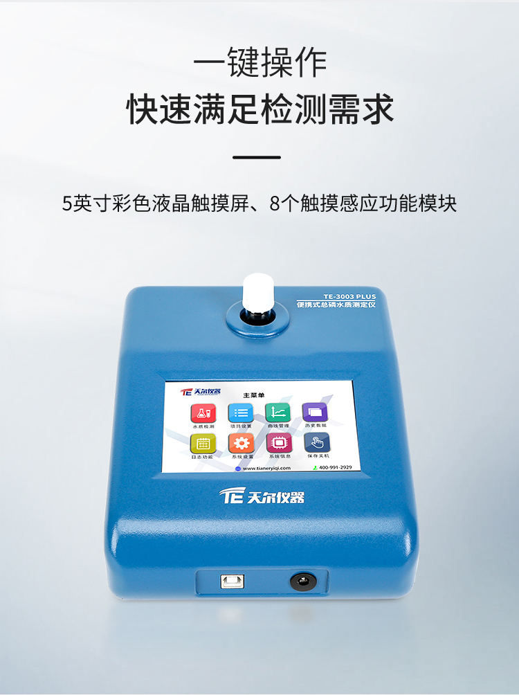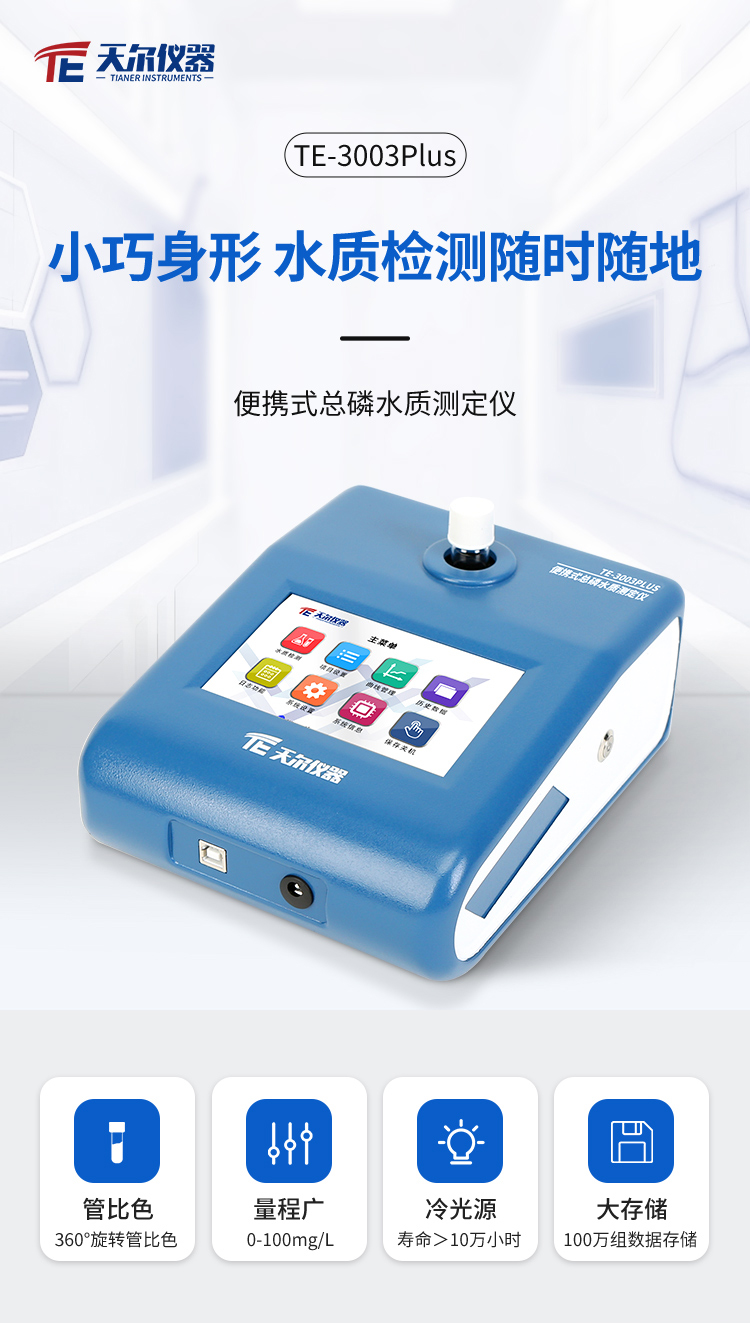 TE-3003Plus 便携式总磷测定仪采用了光纤宽带在线检测技巧,360°高速旋转检测工具,59英寸五彩lcd屏摸屏、国外照明,内设使用水的质量检侧设备൩,的功能稳定的、自动测量更准确、测定方法标准广、的功能整体实力强大、实操简洁明了,氧化还原电位直读,《GB11893-89水体总磷的测得钼酸铵分光光度法》探测规定要求,可迅速的验测水内总磷水分含量。