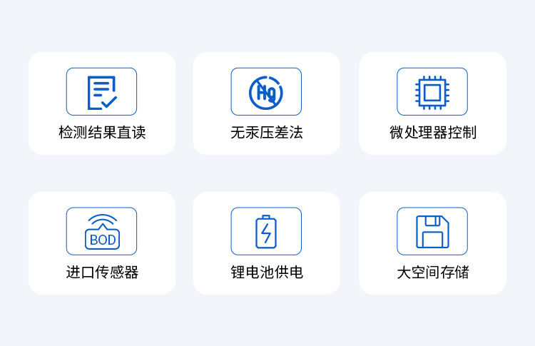 测定精度:6.符合水质BOD5精度测试标准(葡萄糖-谷氨酸标准液BOD5范围在180~230mg/L)