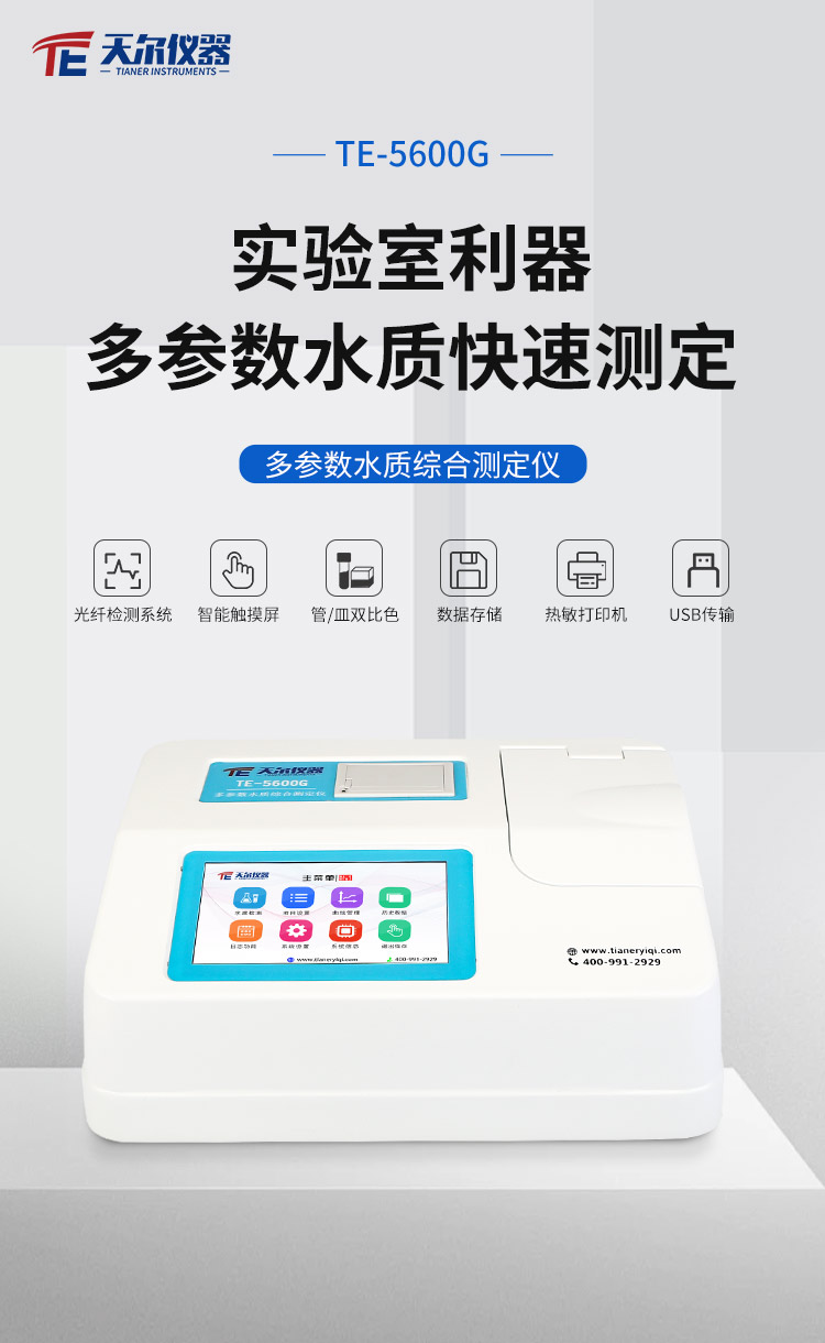 TE-5600G多运作水硬度综合管理测得仪🎐所采用光纤传输检则技术设备,7屏幕尺寸颜色夜晶摸屏、八个摸感应式作用版块、个性化化工作规范方案,实际操作便利,相结合进口的医疗器材点光源,专业的水环境查测仪软件系统,TE-5600G多参数表水环境合理检验仪安全稳定性安全稳定、自动测量准确无误、检验範圍广、职能强 、运营简洁,已经𝔉充分考虑 《HJT399—2007水污染监测电化学需氧量的检验迅速的消解分光光度法》《HJ535-2009水污染监测高锰酸盐指数的检验纳氏实验试剂分光光度法》《GB11893-89水污染监测总磷的检验钼酸铵分光光度法》查测的标准.