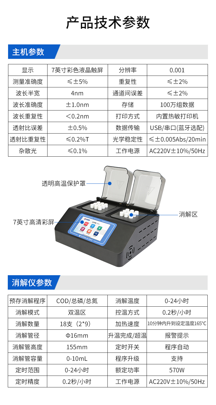 🌱要求配资:COD转用制剂1盒、氧化还原电位转用制剂1盒、总磷转用制剂1盒、比色皿、比色皿架、比色管架、移液枪、打印文件纸、响应管、应用就说明手冊、物品资格证证、分析仪器包装箱清淡、包修卡 。