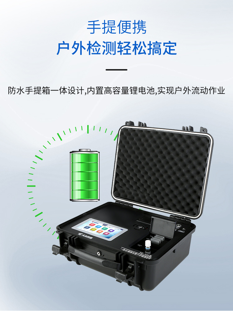简要描述:采用军用级高强度防水手提安全箱一体化设计,光纤检测技术,7寸彩色液晶触摸屏、8个触摸感应功能模块、人性化指引设计,操作便捷,运用进口医用光源,专业水质检测仪系统