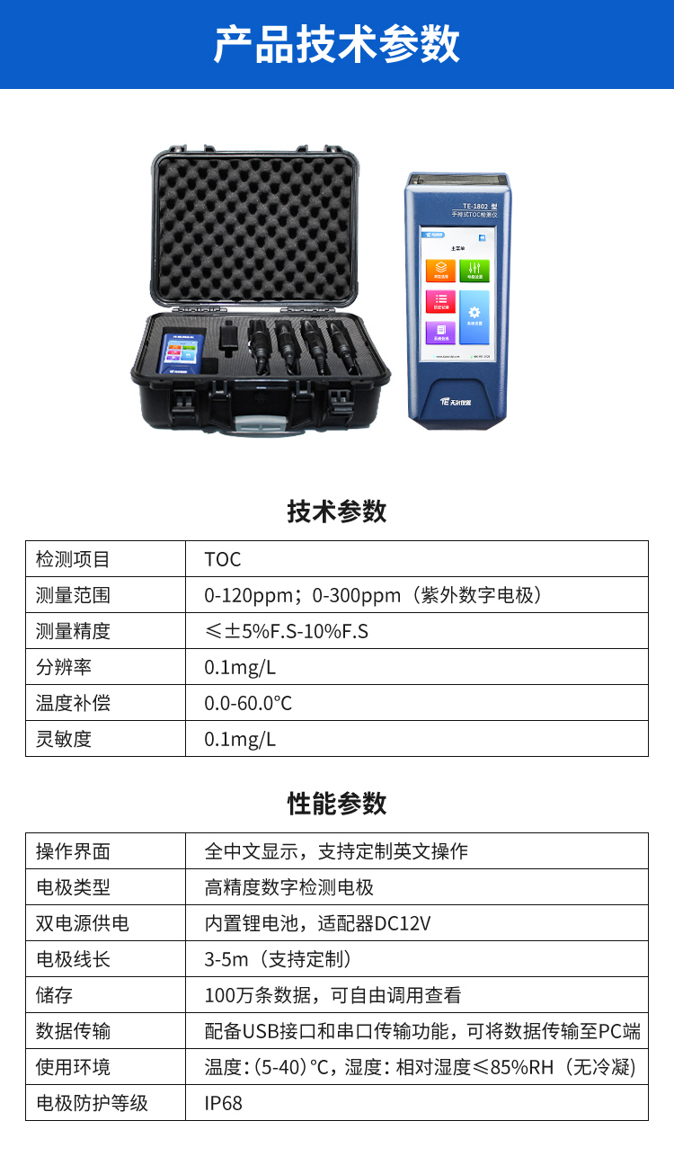 TE-1802轻便式式水质检测TOC测得仪  技能优点和缺点