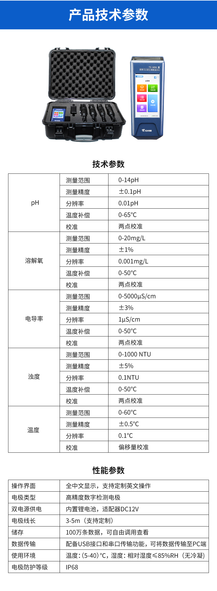 TE-1850轻便式式水体五叁数检测法仪