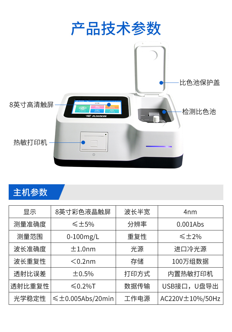 TE-5001饮用水硝酸钠盐氮更快检验仪  的技术参数表表
