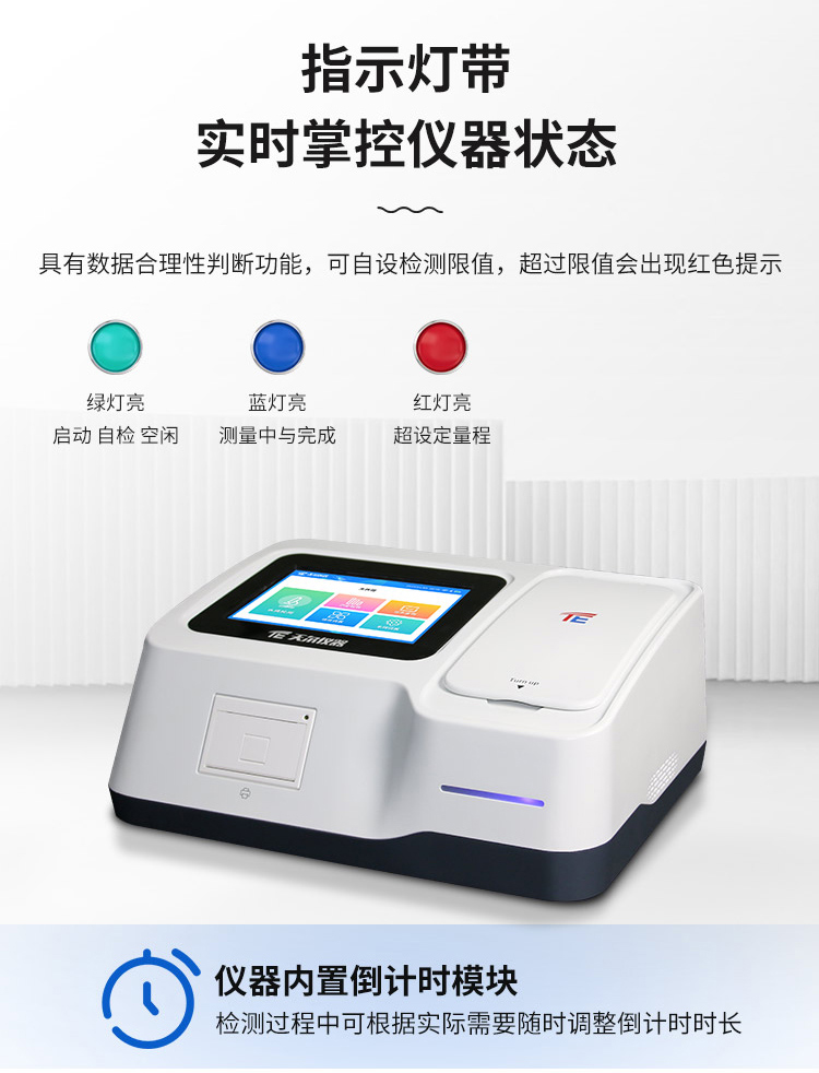 ꦡ3. 具备着指令灯条,实验仪器进行时绿灯常亮、检查成就及空闲情况、在线检测来完成橙色灯存在常亮情况、估测时中海蓝灯闪亮、超人设测量范围时亮红灯常亮等影响;
