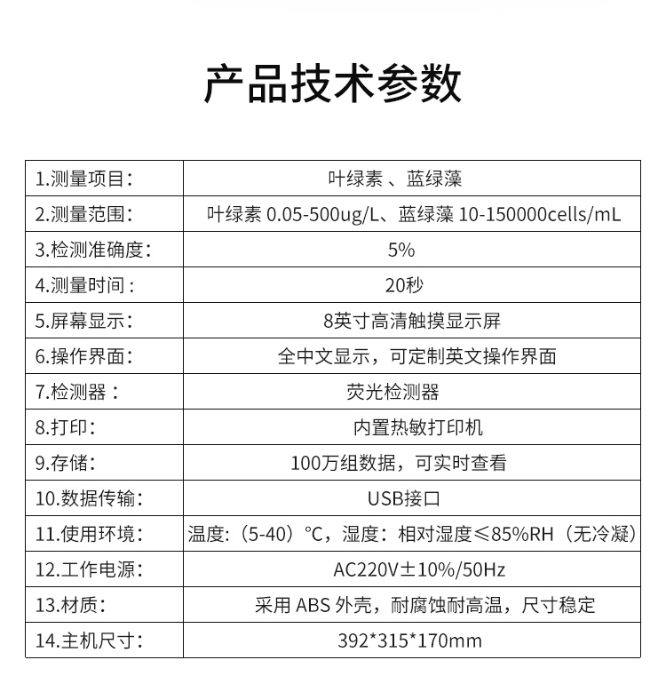 TE-1080型 叶绿素蓝绿藻测得仪  產品性能参数